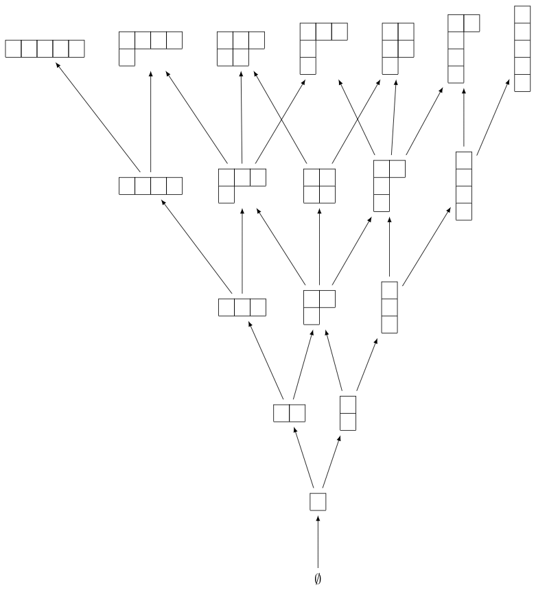 We begin by creating the first few levels of Young’s lattice \(Y\). For this, we need to define the elements and the order relation for the poset, which is containment of partitions: